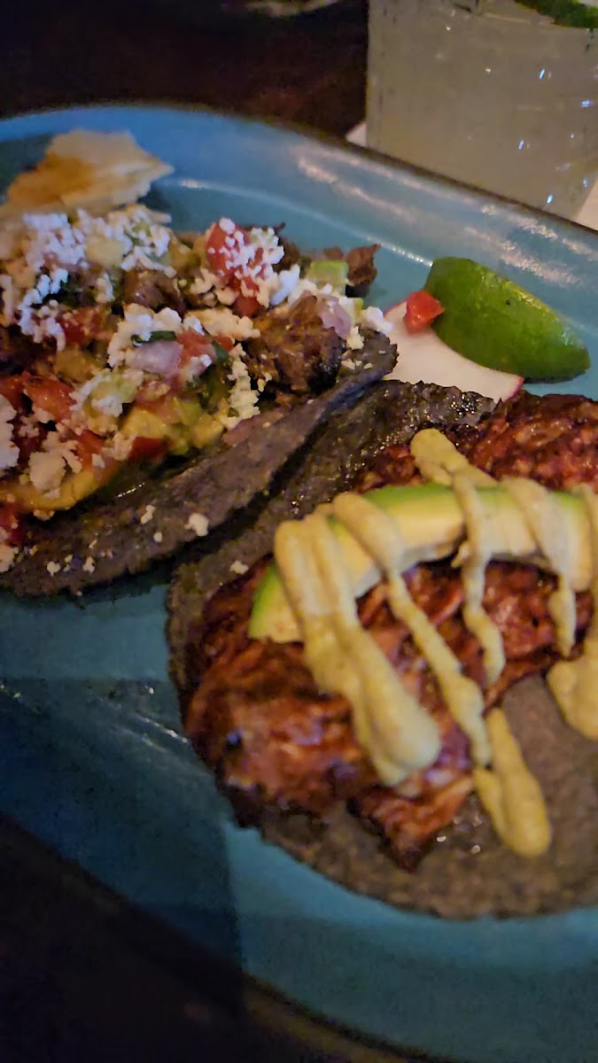 First time and this place did not disappoint! Cocktails were great. The Mole Old Fashioned was unique with a spicy flavor. The different Tacos were delicious, rib eye, Burris and baha were excellent. Our server Ericka was friendly and professional. Would definitely recommend!